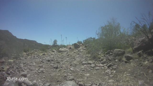 このあたりから上りがかなりきつくなる。動画ではわかりにくいが、突然カクっと斜度が変わるところがあって慎重に走る必要がある。動画に出てくるようなバギーはいとも簡単に上っていくが。。。